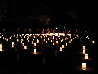 ボランティアの方々がひっきりなしに着火マンでつけて回ってました。風防対策を考えてない構造のためだと思いました。この紙灯篭は1口500円でしたが、紙とろうそくの原価、その敷設や着火をボランティアに頼っているのだから、かなりの収益があるはずですが、何かの寄付にまわされるのでしょうか?